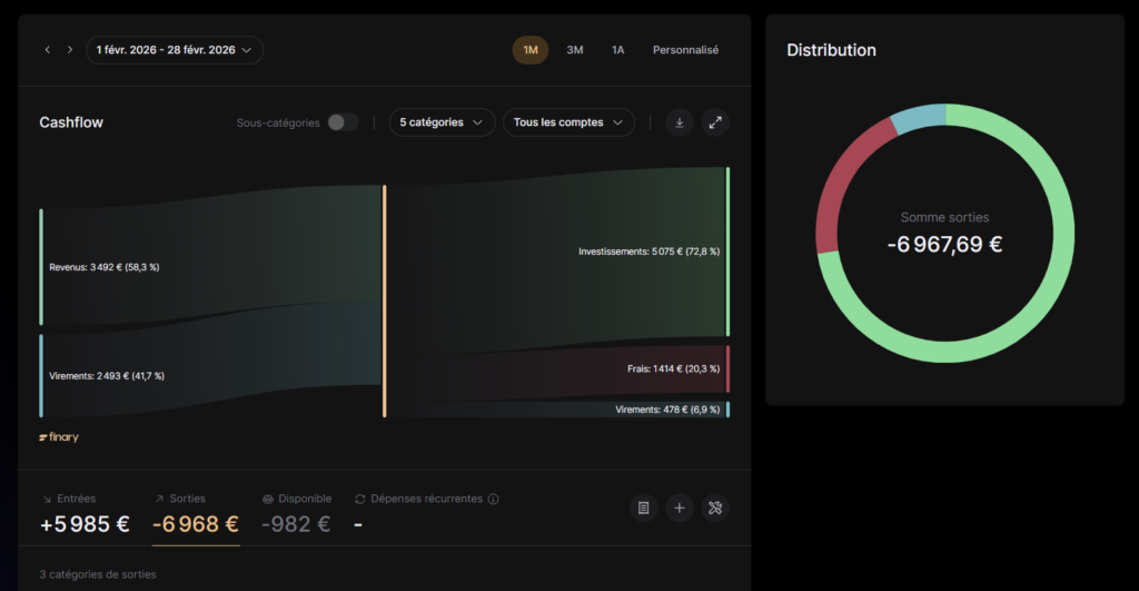 J’en ai fait l’expérience directement : Finary affichait 1 414 euros de « frais » sur mon compte Degiro dans la section Budget. En creusant, il s’agissait en réalité des frais de change liés à l’achat d’actions américaines en euros. Degiro convertit les euros en dollars pour chaque transaction, et la valeur totale de ces conversions apparaissait comme des frais. Ce ne sont pas de vrais frais dans ce cas précis, mais l’outil m’a forcé à regarder ce que je payais réellement. C’est exactement son rôle.